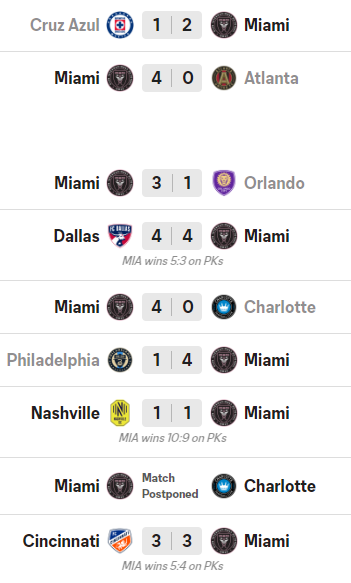 가장 최근인 신시내티와의 US 오픈 컵에서도 승부차기 끝에 결승에 진출하여 개인 통산 45번 째 우승 트로피 노리고 있습니다. 결승에 진출한 인터 마이애미는 9월 27일 휴스턴과 우승 트로피를 위해 맞설 예정입니다. 메시가 인터 마이애미에 오기 전까지 마이애미는 줄 곧 하위권에 머무는 팀이었고 올 시즌도 메시 이적 전까지 22전 5승 3무 14패를 기록하고 있었습니다. 하지만 메시가 오고나서 100% 승률을 보이고 있어 US 오픈 컵 우승을 할 가능성이 매우 높아 보입니다. 현재 메시는 마이애미에서 10골 3도움을 기록 중입니다.