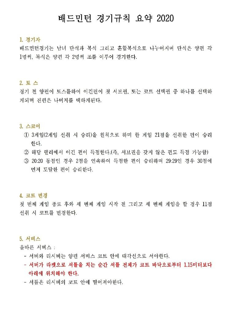 이 포스트에서는 배드민턴의 규칙에 대해 알아보겠습니다.