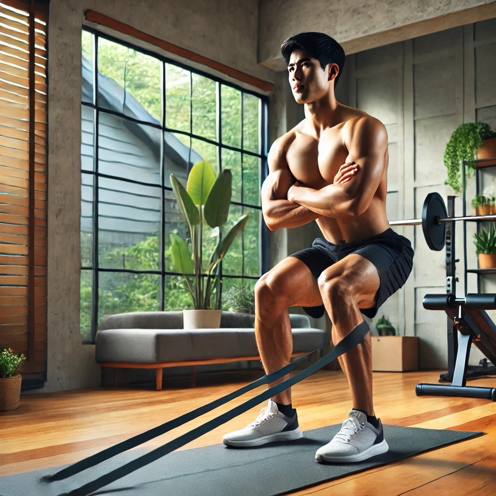 - 밴드 스쿼트: 대퇴사두근, 둔근 강화 (4세트 x 15-20회)