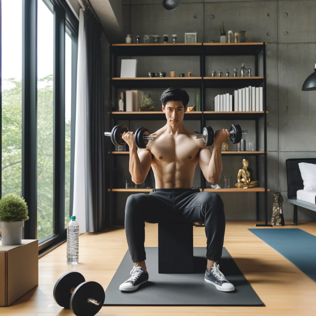 - 덤벨 숄더 프레스: 어깨 근육 발달 (3세트 x 10-12회)
