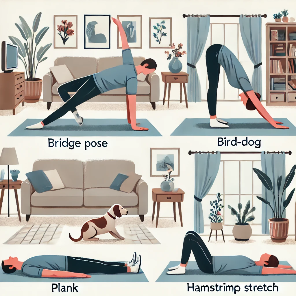 - 복부와 척추 기립근 강화: 척추를 지탱하는 근육을 튼튼하게 만들어야 합니다.