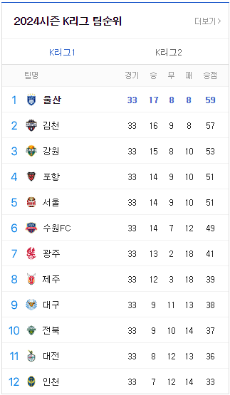 강등권인 10~12등의 승점차도 고작 4점 차이다.